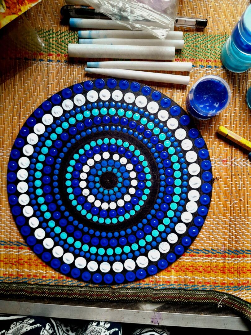 This Dot Mandala artwork is hand-crafted using high-quality acrylic and fabric paints on a durable MDF board surface. Each dot is placed with patience, balance, and intention, creating a harmonious rhythm that guides the mind into calmness and focus.
