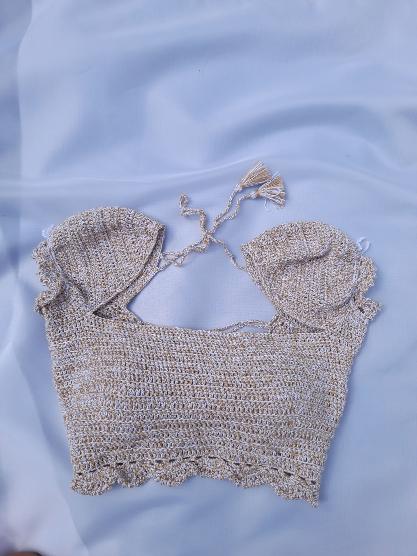 This is a handmade crochet crop top.