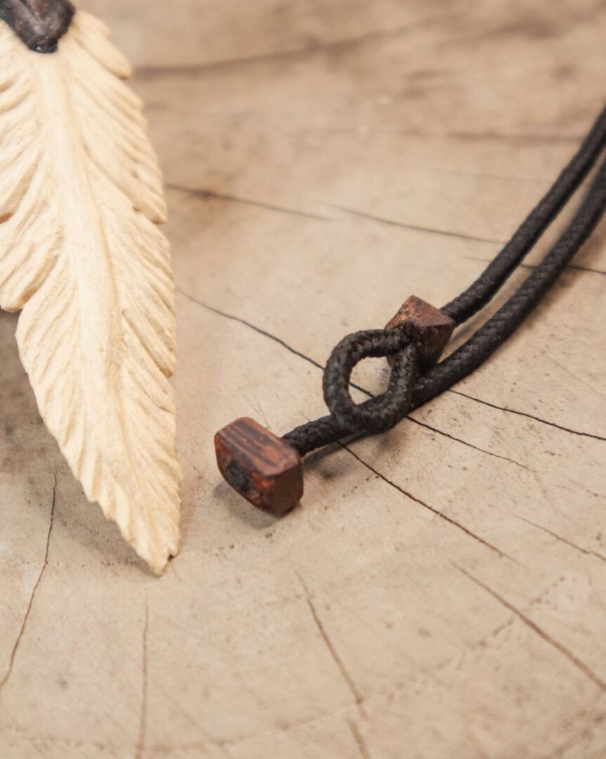 Handmade wooden beads are added to the cord to give balance and a natural look. Each bead is simple and smooth, matching the earthy style of the pendant. Because the wood comes from nature and is shaped by hand, every necklace is one of a kind.